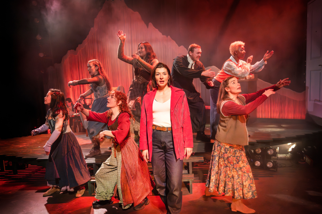 The production wears its themes openly: women’s bodily autonomy, the immigrant journey from Scotland through Ireland to Appalachia, and how traditional ballads preserve the voices of those who came before us. Anderson’s score blends Scottish, Irish, and Appalachian folk traditions with contemporary musical theatre styles, performed by a four-piece all-female band led by music director Shonagh Murray. The harmonies are exceptional. When the full company gathers for an a cappella number opening the second act, the theatre briefly feels transported to a ceilidh. Individual songs like “The Four Marys,” “Chosen Family,” and “Red Red River” showcase Anderson’s melodic gifts and the cast’s considerable vocal abilities.