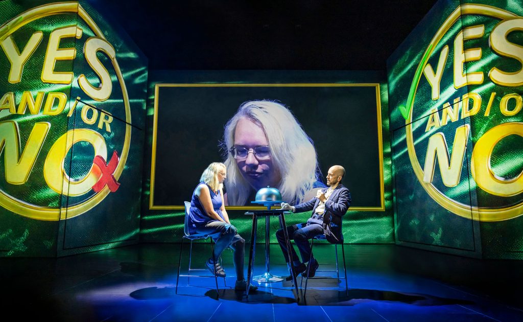 A spectator draws a picture, another picks a number, someone else recalls a treasured memory. Each private choice turns out to have been anticipated, sometimes scrawled on a placard that has been onstage since doors opened. There is no conventional plot, but the order of the routines creates momentum; by the finale the entire theatre is primed for a revelation that knits every moment together.