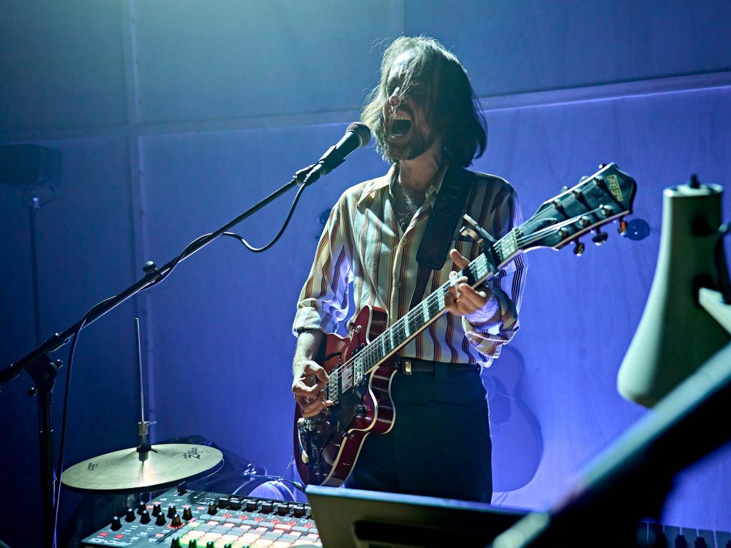 The music is more than background. Played live and rooted in folk-Americana rhythms, it feels like wind through prairie grass or the rumble of a distant storm. In one sequence midway through the first act, the guitar becomes almost a narrator, its loops and strums setting a cadence for Holden’s speech that heightens the sense of unease. Sound design gives precision to this effect: voices seem to come from different distances, making the stage feel both intimate and vast.