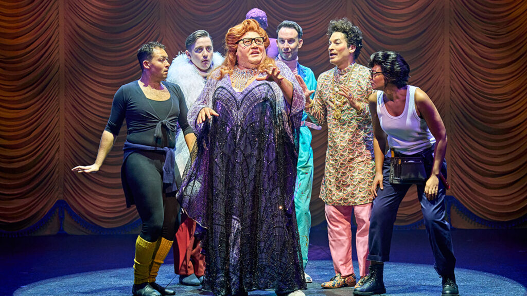 Trevor Ashley steals scenes as director Roger DeBris with an economy that suggests genuine talent beneath the camp. His expressions alone generate laughter; his Keep It Gay number exemplifies how restraint amplifies absurdity. Harry Morrison’s Liebkind is amusing if one-note, playing the Nazi playwright as an overgrown schoolboy. Raj Ghatak brings Julian Clary-adjacent flourishes to common-law assistant Carmen Ghia in what remains essentially a collection of mannerisms.